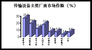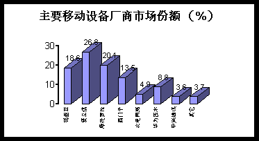(2)市場(chǎng)特點(diǎn):中興通訊、華為技術(shù)等非外資廠商在GSM網(wǎng)絡(luò)基礎(chǔ)設(shè)備領(lǐng)域取得突破且取得了不凡的業(yè)績(jī),雖不足撼動(dòng)外資品牌的霸主地位,但在移動(dòng)交換系統(tǒng)、基站系統(tǒng)市場(chǎng)中份額迅速擴(kuò)大,移動(dòng)網(wǎng)絡(luò)的迅速擴(kuò)張給非外資廠商還是留有相當(dāng)?shù)目臻g。