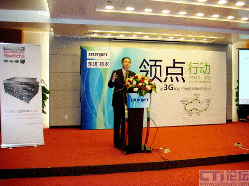 CTI論壇(ctiforum)03月19日消息:由深圳市東進(jìn)通訊技術(shù)股份有限公司主辦的“領(lǐng)點(diǎn)行動(dòng)——改變和新生,新3G環(huán)境下的增值業(yè)務(wù)和呼叫中心”主題巡展在深圳馬哥孛羅好日子酒店正式拉開帷幕。東進(jìn)技術(shù)總裁賀建楠與合作伙伴一起,為與會(huì)者帶來了精彩的演講,除了對大環(huán)境的深入精準(zhǔn)分析外,現(xiàn)場還進(jìn)行了全新的Keygoe系列產(chǎn)品在3G環(huán)境下的業(yè)務(wù)演示。