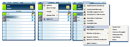 圖5:我們?cè)诮y(tǒng)一的界面下實(shí)現(xiàn)了IM、協(xié)同工作(白板)、電視和游戲等。