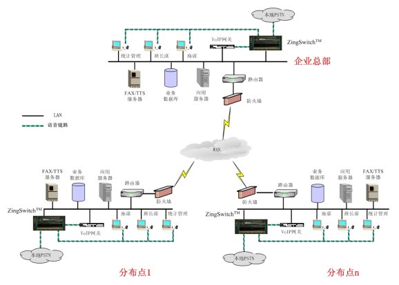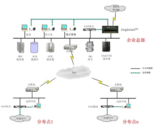 - 各個(gè)分布點(diǎn)的呼入和呼出都直接通過(guò)當(dāng)?shù)赝ㄐ欧⻊?wù)商,既保證了語(yǔ)音服務(wù)的質(zhì)量,又減少了系統(tǒng)的通話費(fèi)用。