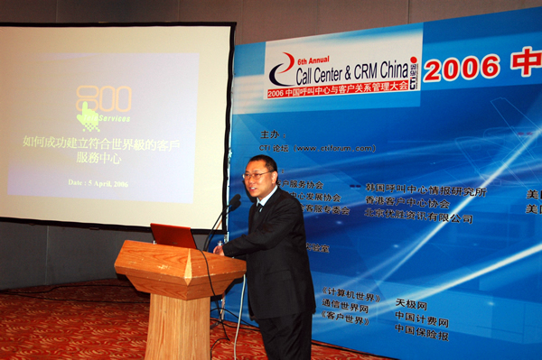 2006年4月3日至5日,2006中國呼叫中心與客戶關(guān)系管理大會在北京國際會議中心隆重召開,以下是飛翱商務(wù)咨詢有限公司主席及首席執(zhí)行官匯卓科技顧問黃有權(quán)先生專題演講實錄: 原來大會希望我用一個比較技術(shù)性的角度看作為一個很好的呼叫中心,能發(fā)揮呼叫中心應(yīng)該有的水平,參加大會的朋友不一定技術(shù)背景強的,有可能來自IT背景,有可能是傾向于使用者,如果我這個呼叫中心發(fā)揮功能,在技術(shù)角度影響考量的點,作為投資和匯報的平衡點,今天演講主要是加重這方面的經(jīng)驗分享。