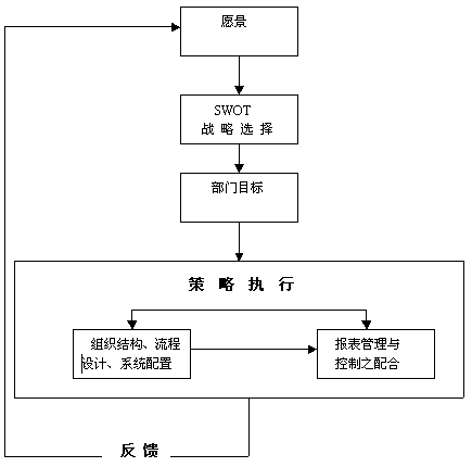 愿景講的是要達(dá)到什么境界(What),而戰(zhàn)略方案和執(zhí)行目標(biāo)就是如何做到(How)以及何時(shí)要做到(When),戰(zhàn)略方案是一套完整的攻擊和防守策略,涵蓋事業(yè)經(jīng)營(yíng)的各方面,譬如在市場(chǎng)營(yíng)銷要做到品牌知名度的程度到那兒,對(duì)消費(fèi)者才能產(chǎn)生一定的吸引力,也就是品牌指名購(gòu)買的拉力(Pull)。另外在銷售網(wǎng)點(diǎn)的規(guī)劃要做到如何的偏及程度,讓消費(fèi)者能不費(fèi)力氣的找到零售點(diǎn)或經(jīng)銷商,而且在銷售據(jù)點(diǎn)能獲得展示的亮點(diǎn)以及商家的提示,也就是產(chǎn)生將自家產(chǎn)品從眾多競(jìng)爭(zhēng)者產(chǎn)品當(dāng)中被強(qiáng)力推薦的推力(Push)。此外在售后服務(wù)及咨詢服務(wù)方面,如何能提供消費(fèi)者一個(gè)隨時(shí)隨地、方便且價(jià)格低廉的聯(lián)系管道,也就是讓消費(fèi)者在使用和遇到問(wèn)題時(shí),可以被快速而確實(shí)的服務(wù),加速產(chǎn)品使用的及時(shí)性和普遍性,以及客戶對(duì)企業(yè)的信任度和忠誠(chéng)度(Ubiquity and Loyalty)。同時(shí)企業(yè)運(yùn)營(yíng)的效率、研究發(fā)展的技術(shù)和財(cái)務(wù)的健全性也是屬于不可或缺的內(nèi)部運(yùn)營(yíng)重要支撐,如何的應(yīng)用最先進(jìn)的運(yùn)營(yíng)觀念、科技技術(shù)、以及嚴(yán)謹(jǐn)?shù)呢?cái)務(wù)會(huì)計(jì)處理,才能快速及時(shí)的支持市場(chǎng)發(fā)展、因應(yīng)大量而快速增加的客戶數(shù)以及在銷售和服務(wù)方面與日俱增的復(fù)雜度、而同時(shí)確保營(yíng)收獲利的正確完整,讓企業(yè)這個(gè)有機(jī)體能生生不息的自我學(xué)習(xí)并運(yùn)作成長(zhǎng)(Learning Organization)。我們以下面的圖表來(lái)顯示一個(gè)完整的愿景戰(zhàn)略執(zhí)行路程。