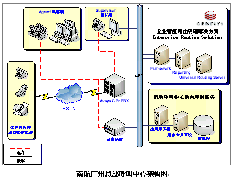 始自2002年eSOON & Genesys 成為南方航空的CTI軟件提供商,為其打造全國(guó)客服中心網(wǎng)絡(luò)。 廣州是南方航空公司的總部所在,自然就成為全國(guó)網(wǎng)絡(luò)的中心;除廣州以外,南方航空還擁有全國(guó)10個(gè)地區(qū)的航線基地,絕大部分基地均為省會(huì)城市或主要商業(yè)中心。到目前為止,作為網(wǎng)絡(luò)據(jù)點(diǎn)的貴陽(yáng)、長(zhǎng)沙、烏魯木齊、沈陽(yáng)、深圳、珠海、汕頭以及?诘确贮c(diǎn)已成功投入使用,另湖北、河北等省份的中心城市也在規(guī)劃階段中。