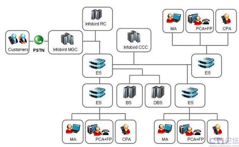 訊鳥于2007年初開始建設(shè)“啟通寶”呼叫中心平臺。該平臺的主體架構(gòu)由控制中心和媒體網(wǎng)關(guān)組成,其中在北京建設(shè)的控制中心類似于系統(tǒng)的“主大腦”,在上海、廣州等其他核心城市建設(shè)第二級的控制中心,類似于系統(tǒng)的“從大腦”?刂浦行牡墓δ苁枪芾砗涂刂疲c企業(yè)客戶相連接。媒體網(wǎng)關(guān)類似于系統(tǒng)的“手腳”,其功能是采取行動,進(jìn)行PSTN和IP網(wǎng)語音的轉(zhuǎn)換等處理。另外,各控制中心負(fù)責(zé)所屬區(qū)域的業(yè)務(wù),同時(shí)互為備份。比如,北京的控制中心平時(shí)負(fù)責(zé)華北的業(yè)務(wù),上海負(fù)責(zé)華東的業(yè)務(wù),深圳負(fù)責(zé)華南的業(yè)務(wù),一旦某一分中心發(fā)生故障或呼叫量超過額定處理能力時(shí),異地分中心便能接管或分擔(dān)該分中心的業(yè)務(wù)。