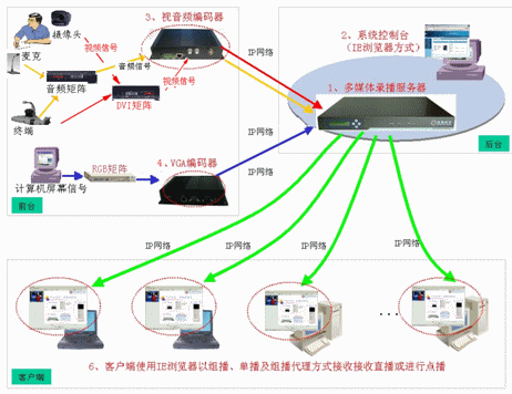 5. 基于IE瀏覽器的系統(tǒng)管理和使用界面,用戶管理使用更加輕松自如超強直播功能,支持多種直播方式(組播、單播、組播代理),直播內(nèi)容包括視頻、音頻和計算機動態(tài)屏幕,接收效果清晰流暢。