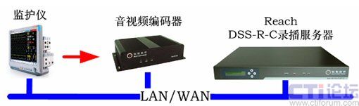 銳取遠程醫(yī)療系統(tǒng)前端視音頻編碼器將采集到的手術(shù)室監(jiān)護儀的信號進行實時編碼和壓縮,通過網(wǎng)絡(luò)傳送給多媒體錄播系統(tǒng)遠程醫(yī)療系統(tǒng)后臺服務(wù)器上。