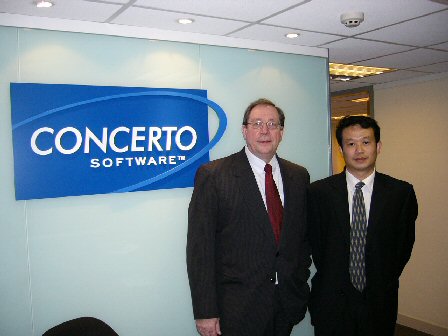 2004年10月3日-8日,Concerto全球總裁James Foy先生走訪亞洲,馬不停蹄地在6天的時(shí)間里訪問(wèn)了包括中國(guó)上海在內(nèi)的5個(gè)城市,向當(dāng)?shù)乜蛻簟⒑献骰锇、媒體、專業(yè)機(jī)構(gòu)以及Concerto員工闡述合并后公司的目標(biāo)、戰(zhàn)略、產(chǎn)品以及服務(wù)體系,并聽(tīng)取他們的意見(jiàn)。2004年10月8日,CTI論壇在上海Concerto中國(guó)總部對(duì)這位IT界的傳奇人物進(jìn)行了專訪。