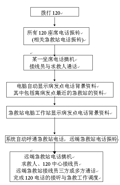 120急救中心接到求救電話(huà)后,120中心接線(xiàn)員在系統(tǒng)的配合下,自動(dòng)呼通急救站,實(shí)現(xiàn)調(diào)度功能
