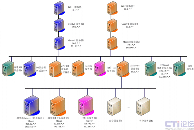 - 多級(jí)架構(gòu)部署:適應(yīng)安邦保險(xiǎn)的網(wǎng)絡(luò)架構(gòu),系統(tǒng)采用服務(wù)器三級(jí)集群部署,這也是網(wǎng)動(dòng)該平臺(tái)的特色樹(shù)型結(jié)構(gòu)。