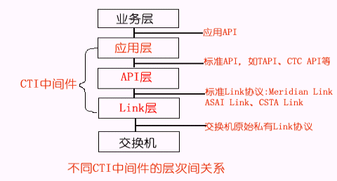 根據(jù)CTI的功能定位,我們可以把CTI產(chǎn)品劃分為不同的層次,一般地可分為三種類(lèi)型:Link層產(chǎn)品、API層產(chǎn)品、應(yīng)用層產(chǎn)品,其分層結(jié)構(gòu)示意圖如下所示: