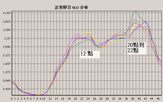 從上圖可以看出,一天24小時之內(nèi),有兩個話務高峰,一個在中午12點左右,一個在晚上8點到10點之間。