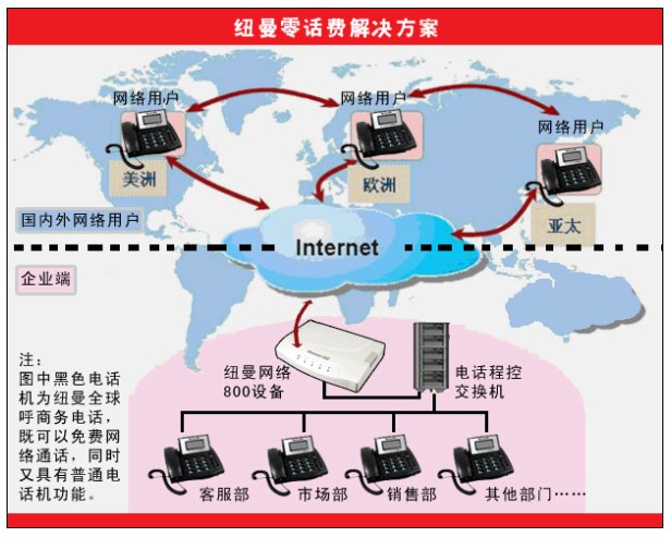 電話通訊技術(shù)發(fā)明以來最震撼的革命——零話費(fèi)解決方案由紐曼開始,該方案由紐曼全球呼智能商務(wù)電話和網(wǎng)絡(luò)800組成,操作簡單、音質(zhì)清晰,通話雙方用普通電話機(jī)實(shí)現(xiàn)免費(fèi)通話。