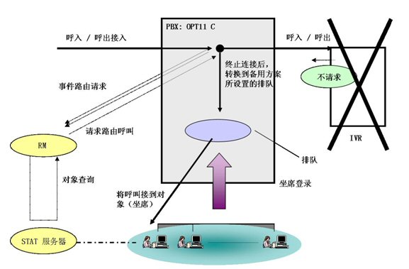 - 當(dāng)RM出現(xiàn)故障(包括Server物理?yè)p壞、RM程序意外終止、網(wǎng)絡(luò)連接失效)時(shí),RM將對(duì)電話的控制權(quán)交還給PBX,PBX根據(jù)自己的電話分配規(guī)則將電話分配到坐席。