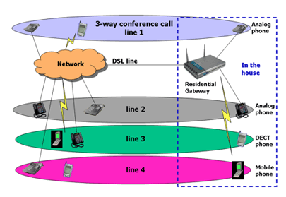 下一代住宅網(wǎng)關(guān)提供領(lǐng)先的數(shù)據(jù)能力,且還可擔(dān)當(dāng)家庭語音和數(shù)字通信的中樞。某些住宅網(wǎng)關(guān)將支持用VoIP替換標(biāo)準(zhǔn)普通老式電話服務(wù)(POTS),而其它網(wǎng)關(guān)將提供用于固定移動(dòng)融合(FMC)的平臺(tái),從而更進(jìn)一步。這就允許消費(fèi)者在室外時(shí),利用與常規(guī)移動(dòng)電話一樣工作、支持Wi-Fi的移動(dòng)電話通過蜂窩網(wǎng)絡(luò)接打電話和接入互聯(lián)網(wǎng)。當(dāng)消費(fèi)者回屋后,電話會(huì)感知這一變化并與無線局域網(wǎng)(WLAN)連通,然后可將其當(dāng)無繩VoIP電話使用。市場(chǎng)研究公司iSupply預(yù)計(jì),2006年售出了2,200萬部具有Wi-Fi功能的移動(dòng)電話,到2010年,該數(shù)字將達(dá)2.85億部。