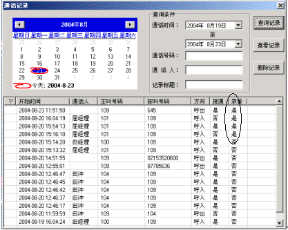 全面的呼叫報(bào)告:系統(tǒng)提供呼入、呼出的全部通訊的詳細(xì)清單。用戶可通過任意電腦終端隨時(shí)查詢通話明細(xì)單。