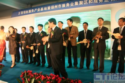 4月21日,江蘇信息服務(wù)產(chǎn)業(yè)基地暨揚(yáng)州市服務(wù)業(yè)集聚區(qū)和服務(wù)業(yè)項(xiàng)目推介洽談會(huì)在江蘇信息服務(wù)產(chǎn)業(yè)基地(揚(yáng)州)隆重召開,省信息產(chǎn)業(yè)廳副廳長(zhǎng)龔懷進(jìn)、揚(yáng)州市委常委、常務(wù)副市長(zhǎng)張京霞為省信息安全技術(shù)中心揭牌,中國(guó)網(wǎng)通集團(tuán)公司總工程師滕勇,神州數(shù)碼高級(jí)副總裁陳勇,上海萬得信息股份董事長(zhǎng)陸風(fēng)等數(shù)十位集團(tuán)公司老總現(xiàn)場(chǎng)祝賀,同時(shí)IBM、AVAYA、優(yōu)勝資訊、神州數(shù)碼等60多家企業(yè)現(xiàn)場(chǎng)簽定了投資合作協(xié)議,而華潤(rùn)通信、中國(guó)電信、酒店無憂、漢世紀(jì)等10家企業(yè)則從廣陵區(qū)委書記孔令俊手中接過了入駐金鑰匙,成為首批入駐江蘇信息服務(wù)產(chǎn)業(yè)基地的企業(yè),至此江蘇信息服務(wù)產(chǎn)業(yè)基地迎來首發(fā)項(xiàng)目招商的“開門紅”,江蘇信息服務(wù)產(chǎn)業(yè)基地也因此被業(yè)界冠以中國(guó)首家專業(yè)定位信息呼叫和數(shù)據(jù)處理產(chǎn)業(yè)的“中國(guó)聲谷”的美譽(yù)。