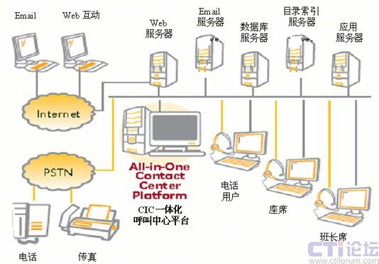 CIC可以方便的和現(xiàn)有的郵件系統(tǒng),Web服務器,數(shù)據(jù)庫,索引目錄服務器 (Directories) 和主機系統(tǒng)無縫集成在一起,無需昂貴的CTI中間鍵或集成服務。