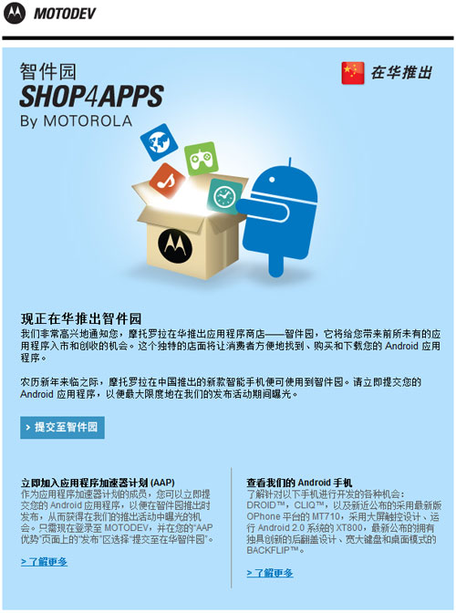 摩托羅拉應(yīng)用商店“智件園” 已在華上線(xiàn)