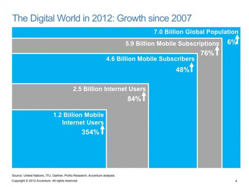 蘋(píng)果的iPhone開(kāi)啟了智能手機(jī)的革命,并且很快獲得了消費(fèi)者的青睞,但是Android平臺(tái)正以一個(gè)更快的速度蔓延世界。在上個(gè)月的世界移動(dòng)大會(huì)上,Accenture的分析師 Lars Kamp分享了一份非常有參考價(jià)值的研究報(bào)告,揭示了移動(dòng)世界的未來(lái)趨勢(shì)。我們從中摘取了9幅數(shù)據(jù)圖供您參考: