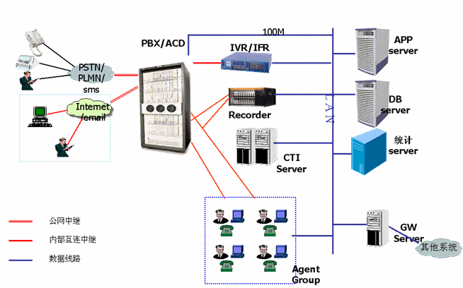 在建立呼叫中心前,廣州自來水公司只有覆蓋公司和各供水管理所的供水熱線系統(tǒng),該系統(tǒng)只有簡(jiǎn)單的接入電話,沒有完善的呼叫中心功能,話務(wù)量承受能力小,接通率低,沒有統(tǒng)一的服務(wù)窗口和后臺(tái),統(tǒng)計(jì)功能也只能靠手工實(shí)現(xiàn)。為了更好的為廣大市民服務(wù),廣州市自來水公司決定取消原先供水熱線工作模式,由公司成立客戶服務(wù)中心集中管理,建立基于互聯(lián)網(wǎng)的呼叫中心,負(fù)責(zé)全市范圍內(nèi)客戶服務(wù),使客戶能夠通過各種資訊工具如電話、傳真、電子郵件、短信等方式從自來水公司獲取用水信息,并能實(shí)現(xiàn)業(yè)務(wù)申請(qǐng)、投訴、業(yè)務(wù)受理、業(yè)務(wù)咨詢、業(yè)務(wù)查詢等,采用回?fù)芗夹g(shù)實(shí)現(xiàn)客戶回復(fù)、客戶回訪、客戶調(diào)查等業(yè)務(wù)。