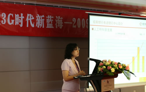 圖:招商銀行客服中心總經(jīng)理徐子穎做《精細(xì)化管理之流程改善》主題演講
