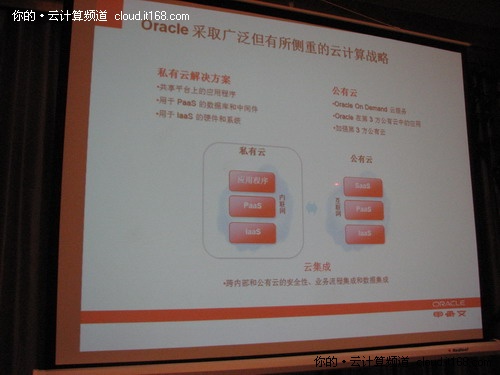 而甲骨文是關(guān)注公有云還是私有云呢?就如甲骨文“更多的企業(yè)最終將混合采用公有云和私有云”那樣,甲骨文的云計(jì)算策略是既支持公有云又支持私有云使客戶有選擇余地。不過喻思成也坦言,由于甲骨文關(guān)注企業(yè)市場(chǎng),可能更多的精力還是放在私有云的建設(shè)上。