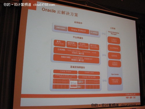 盡管甲骨文能提供的云產(chǎn)品是那樣的多,但喻思成也強(qiáng)調(diào),在IaaS、PaaS和SaaS中,IaaS才是甲骨文云計(jì)算中最重要的,接近同樣重要的是PaaS。SaaS方面,盡管甲骨文有Oracle On Demand,能提供在線CRM產(chǎn)品,但這不占主要地位。甲骨文始終是一個(gè)平臺(tái)、產(chǎn)品的供應(yīng)商,為私有云或者公有云的運(yùn)營(yíng)者提供軟件、硬件和解決方案的供應(yīng)商,而不是一個(gè)云服務(wù)商。