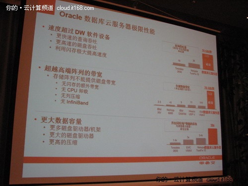 喻思成在介紹甲骨文在云計(jì)算產(chǎn)品的時(shí)候毫不掩飾對(duì)Oracle數(shù)據(jù)庫(kù)云服務(wù)器和Oracle中間件云服務(wù)器的贊譽(yù)。他說,甲骨文將這兩款產(chǎn)品稱之為“經(jīng)過預(yù)調(diào)測(cè)的系統(tǒng)”。它們均由硬件和軟件組成,硬件和軟件能以一種優(yōu)化的方式協(xié)調(diào)一致地運(yùn)行,并以一種預(yù)集成的工作狀態(tài)提供給客戶,因此具有極高的性能和效率,是數(shù)據(jù)庫(kù)的理想目標(biāo)平臺(tái),也是在中間層合并幾十或數(shù)百個(gè)應(yīng)用的理想目標(biāo)平臺(tái)。由于它們都是由甲骨文預(yù)集成和預(yù)配置的,因此也簡(jiǎn)化了部署,能減少總的硬件量并降低環(huán)境復(fù)雜性,因此對(duì)客戶而言,其總體擁有成本更低。