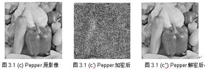 加密過后的影像,不論以人類的視覺直接觀看,或計算其碎形維度D (Fractal Dimension),都顯示影像達到完全混亂的程度。(2)