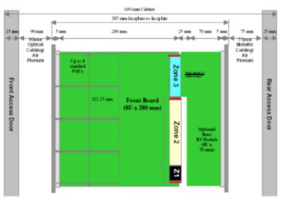 ATCA的架構(gòu)主要包括以下部分:正面插槽,RTM,PEM,背板,CMMs,散熱系統(tǒng)。(參考圖一與圖二)
