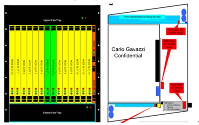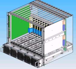 另外在機架內(nèi)的放置空間上,42U的標準機架里可以放3臺12~14U機箱,若將機箱降至10U則可以放置4臺,這樣可以增加整體空間的利用率,所以有了10U機箱的設(shè)計需求。在各種不同高度的機箱設(shè)計中,風扇散熱系統(tǒng)的放置位置、方式與總散熱效能能夠達到200*14=2800W,將會是ATCA機箱設(shè)計所要考慮的最重要因素之一,尤其是在10U的機箱設(shè)計上。