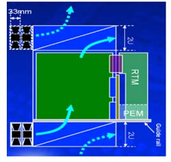 總體而言,目前具有前方進氣風扇與后方排氣風扇組合散熱系統(tǒng)的ATCA機箱皆為12U機箱。而在10U機箱方面由于受總高度的限制,現(xiàn)階段還是以以前方進氣或后方進氣的設(shè)計為主。因為少了雙向風扇的對流作用,所以必須采用效率更高的風扇與較佳的進風或出風設(shè)計才能達到理想的散熱效果。
