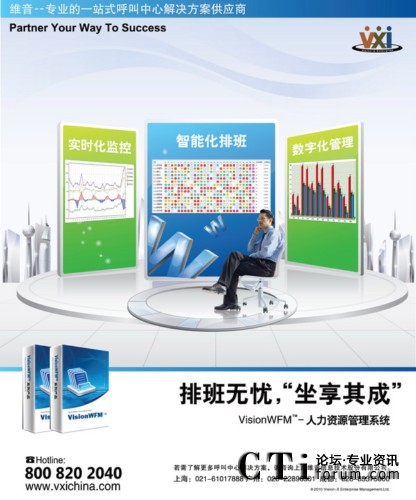 VisionWFM解決方案是為降低客戶服務中心的運營成本、提高客戶服務中心管理效率而設(shè)計的。我們可以通過系統(tǒng)軟件,科學地改進運營策略和管理方法,使客戶服務中心在服務質(zhì)量、客戶滿意度和成本控制等績效指標上都取得極大的提高。