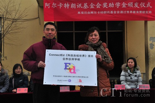 CTI論壇(ctiforum)3月6日消息(記者 浩宇):近日,法國阿爾卡特朗訊基金會(huì)(Alcatel-Lucent Foundation)與美國非營利組織世界教育(World Education)在北京市大興區(qū)農(nóng)民工子弟學(xué)!埡W(xué)校聯(lián)合舉辦公益助學(xué)活動(dòng),來自阿爾卡特朗訊中國旗艦企業(yè)——上海貝爾及世界教育的志愿者為45名貧困生、72名成績(jī)優(yōu)秀學(xué)生、244名成績(jī)進(jìn)步獎(jiǎng)獲得者共計(jì)361人發(fā)放獎(jiǎng)助學(xué)金和獎(jiǎng)狀。此次活動(dòng)是ConnectEd“科技連結(jié)世界”項(xiàng)目協(xié)助流動(dòng)青少年“透過科技擁抱世界”系列公益活動(dòng)的重要一站,ConnectEd “科技連結(jié)世界”項(xiàng)目由阿爾卡特朗訊基金會(huì)(Alcatel-Lucent Foundation)與世界教育(World Education)共同在全球推動(dòng)。作為志愿者之一,上海貝爾執(zhí)行副總裁、阿爾卡特朗訊中國區(qū)產(chǎn)品與研發(fā)負(fù)責(zé)人莊靖博士參與了此次活動(dòng),并為阿爾卡特朗訊ConnectEd項(xiàng)目合作校揭牌。雙方還在北京市昌平區(qū)新源學(xué)校舉行了公益助學(xué)活動(dòng),為45名貧困生、39名成績(jī)優(yōu)秀學(xué)生、52名成績(jī)進(jìn)步獎(jiǎng)獲得者共計(jì)136人發(fā)放獎(jiǎng)助學(xué)金。