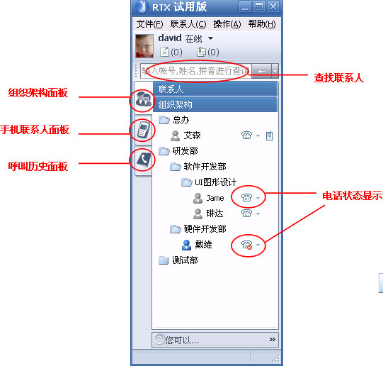 OmniRTX插件實(shí)現(xiàn)了在RTX界面上,直接對(duì)企業(yè)內(nèi)部電話終端進(jìn)行基本呼叫業(yè)務(wù)和電話增值業(yè)務(wù)的控制、設(shè)置和管理,更加方便的提供了企業(yè)內(nèi)部員工之間的交流,進(jìn)一步改善企業(yè)與客戶之間的溝通渠道,所有的溝通和交流不再受時(shí)間、空間的限制,更高質(zhì)量的解決了企業(yè)在語音、文字、圖片以及視頻等多方面的效率問題。