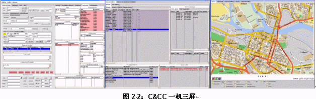 - 一機(jī)三屏:一屏CAD,另一屏為GIS,第三屏專用于資源調(diào)度。與雙屏配置相比,三屏配置的優(yōu)勢(shì)在與資源調(diào)度更加直接、快捷,同時(shí)更可以整合無線調(diào)度通訊資源。但是三屏配置需要較復(fù)雜的客戶化工作。