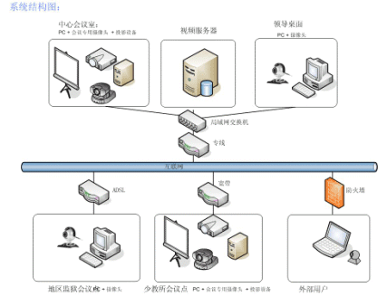 所以四川省勞動教育局希望能夠建立一個基于自身網(wǎng)絡(luò),高效率的溝通平臺,滿足日常工作和系統(tǒng)培訓(xùn)等對會議的需求,可以提高勞教系統(tǒng)的工作效率,及時傳達上級精神,并實現(xiàn)對下屬各級別單位的有效管理等。