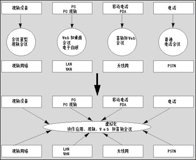 典型的大企業(yè),其電話會(huì)議,視頻會(huì)議以及網(wǎng)絡(luò)與數(shù)據(jù)會(huì)議通常是相互獨(dú)立的系統(tǒng)。UCC可以實(shí)現(xiàn)各種通信平臺(tái)的協(xié)同工作,員工只需使用一個(gè)通用界面便可調(diào)用多種終端設(shè)備。它將視頻會(huì)議、音頻會(huì)議、短消息以及網(wǎng)絡(luò)接入結(jié)合在一起。還能結(jié)合IP電話功能,如狀態(tài)信息功能等。本專題專門介紹了業(yè)界較為成功的幾種融合視頻概念和產(chǎn)品。