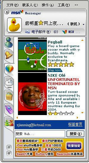 3) 拼接代替加強。現(xiàn)有應用的簡單決定了IM軟件本身的簡單,因此IM本身變得不受關注,廠商所作的大多是功能拼接,例如MSN加強聯(lián)網(wǎng)游戲,QQ傍上移動。甚至可以認為,IM本身已經(jīng)被置于次要位置。