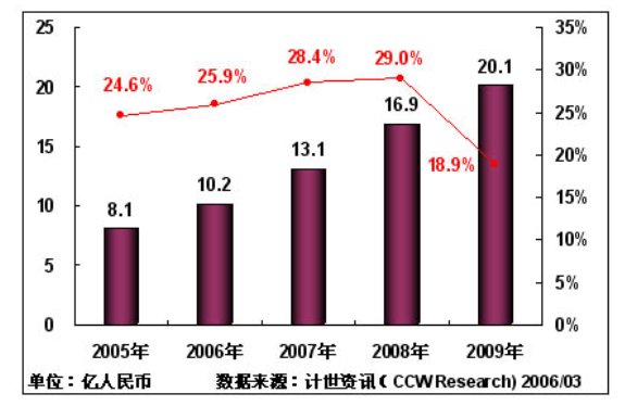 計世資訊(CCW Research)預計:2006年中國城市應急聯(lián)動系統(tǒng)IT投資將保持25.9%的增長率,投資規(guī)模將達到10.2億元;由于"十一五"規(guī)劃的實施,以及數字奧運進入關鍵建設階段,預計在2007年,中國城市應急聯(lián)動系統(tǒng)增長率達到28.4%,2008年增長率達到29.0%;到2009年中國城市應急聯(lián)動系統(tǒng)將進入穩(wěn)定增長階段,IT投入將達到20.1億元。