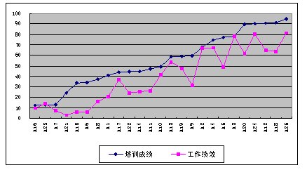 我們通過(guò)分析,圖3顯示,員工的培訓(xùn)成績(jī)和其工作績(jī)效是無(wú)關(guān)的,這說(shuō)明培訓(xùn)是無(wú)效的。無(wú)效的原因也許是由于培訓(xùn)內(nèi)容不合理或培訓(xùn)組織實(shí)施不善等原因,總之培訓(xùn)是無(wú)效的,需要改進(jìn)。