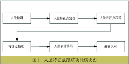 該模塊首先進(jìn)行人臉檢測(cè),對(duì)眼角、嘴角等特征點(diǎn)進(jìn)行粗略定位,然后根據(jù)小波變換進(jìn)行精細(xì)定位,最終得到較為精細(xì)的人臉表情參數(shù)初始值。之后運(yùn)用Lucas-Kanade算法進(jìn)行特征點(diǎn)的跟蹤,利用跟蹤得到的特征點(diǎn)位置首先根據(jù)Ekman的人臉表情編碼規(guī)則進(jìn)行編碼,然后根據(jù)所得到的編碼結(jié)果進(jìn)行表情識(shí)別。該系統(tǒng)不僅實(shí)現(xiàn)了全自動(dòng)的特征點(diǎn)定位和跟蹤,而且根據(jù)人臉特征點(diǎn)的分布模型,可以對(duì)跟蹤時(shí)特征點(diǎn)的丟失現(xiàn)象進(jìn)行補(bǔ)償。