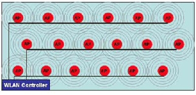 在傳統(tǒng)的WLAN中,每個接入點(diǎn)構(gòu)成一個單元,且為每個接入點(diǎn)分配一個信道。為了減小單元間的干擾,必須根據(jù)安裝部署前測得的詳盡的射頻站點(diǎn)電測方案,為業(yè)務(wù)區(qū)中的所有接入點(diǎn)分配信道。這種接入點(diǎn)部署方案需要大量的射頻經(jīng)驗(yàn)和周密規(guī)劃,這通常是WLAN安裝過程中成本最高的一個方面。這種剛性的架構(gòu)還迫使語音和數(shù)據(jù)用戶競用相同的無線資源,因此即便是基于單元的網(wǎng)絡(luò)安裝好并運(yùn)行后,信號傳輸問題依然會持續(xù)存在。隨著運(yùn)營商機(jī)構(gòu)的增加或變化,在確定新的接入點(diǎn)部署方案時還需額外的射頻規(guī)劃成本。