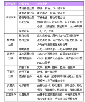 3.支持的業(yè)務類型(見表1)