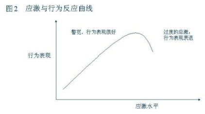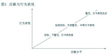 當應激水平處于一個較低的指標時人在心理上處于一個放松、不警覺的狀態(tài),從而關聯(lián)的行為表現(xiàn)就比較差但隨著應激水平的加大,相關聯(lián)的形為表現(xiàn)就會從中等向表現(xiàn)良好過渡。