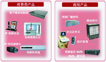 轉碼芯片的差異化關鍵是可支持多樣化的編碼格式,尤其是向便攜式產品的延伸。加拿大威視(ViXS)系統(tǒng)公司開發(fā)的轉碼芯片XCode3290就具有稱做“鏡像轉碼”的功能,可以將HDTV的視頻內容同時轉換成2種不同編碼格式。例如,將MPEG-2的HDTV視頻轉碼成H.264的同時,還能將分辨率縮小為320X240像素的QVGA,方便在iPod等便攜產品上播放。