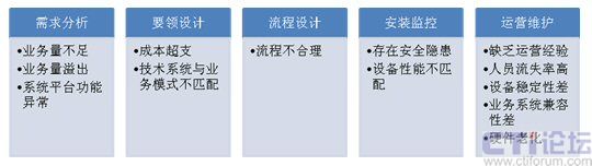 要領設計階段風險:在該階段,企業(yè)將決定呼叫中心的建設規(guī)模、技術(shù)設備、組織架構(gòu)及運營模式等一系列環(huán)節(jié)。此過程中,最容易且是最嚴重的風險在于成本估算的差異和技術(shù)系統(tǒng)與業(yè)務模式的不匹配。多數(shù)企業(yè)在呼叫中心建設成本估算時由于經(jīng)驗的缺乏無法全面預測建設成本,特別是對運營費用的把握常常相差數(shù)倍。因此,實際建設成本過分超出預算成為困擾項目執(zhí)行者的一大難題。這就使得企業(yè)對呼叫中心的投入猶如一個無底洞,一投再投,嚴重影響了企業(yè)資金鏈的正常運轉(zhuǎn),也為呼叫中心的“成本”角色加重了色彩。此外,很多公司或者系統(tǒng)集成商因為初始投入成本、建設經(jīng)驗或者運營經(jīng)驗等方面的限制,在呼叫中心建設初期很重視技術(shù)平臺的建設,但忽視了運營思想在系統(tǒng)方案中的體現(xiàn),在系統(tǒng)建成后,再去完善運營系統(tǒng),這樣極大地增加了呼叫中心的運營和管理成本,也影響到管理效率。