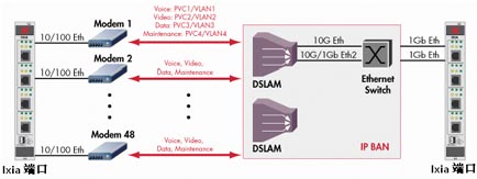 IXIA在實(shí)際的寬帶接入和匯聚設(shè)備測試中,特點(diǎn)和優(yōu)勢非常明顯,可以仿真真實(shí)用戶的行為,比如PPPoE接入方式上運(yùn)行HTTP和VoIP的流量,同時在Q-in-Q接口上運(yùn)行IPTV業(yè)務(wù),這種測試方式完全以家庭用戶為單位,非常真實(shí)地評估寬帶接入設(shè)備的性能。