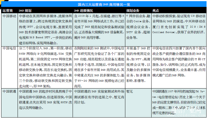 國內(nèi)三大運營商已經(jīng)開始積極試點和部署IMS商用網(wǎng)絡(luò),樹立全業(yè)務(wù)競爭市場的優(yōu)勢。