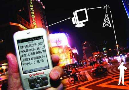 編輯你所要尋找對(duì)象的手機(jī)號(hào)碼發(fā)送到一個(gè)指定的號(hào)碼“05058”,就能立刻掌握機(jī)主所處的準(zhǔn)確位置——這聽起來(lái)比重案組破案還要玄,但現(xiàn)在已成現(xiàn)實(shí)。